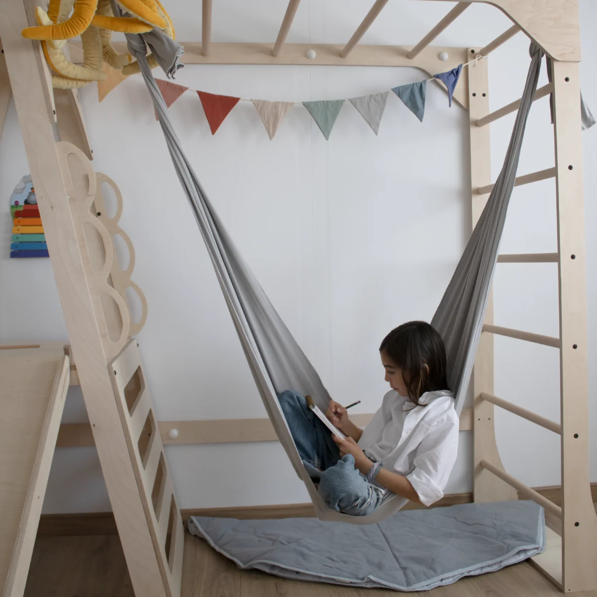 ?Columpios : Añade nuestras Anillas Miko, Trapecio Hogar, Tela elástica, Disco Koäla…, y disfruta de una experiencia de movimiento única en tu hogar.