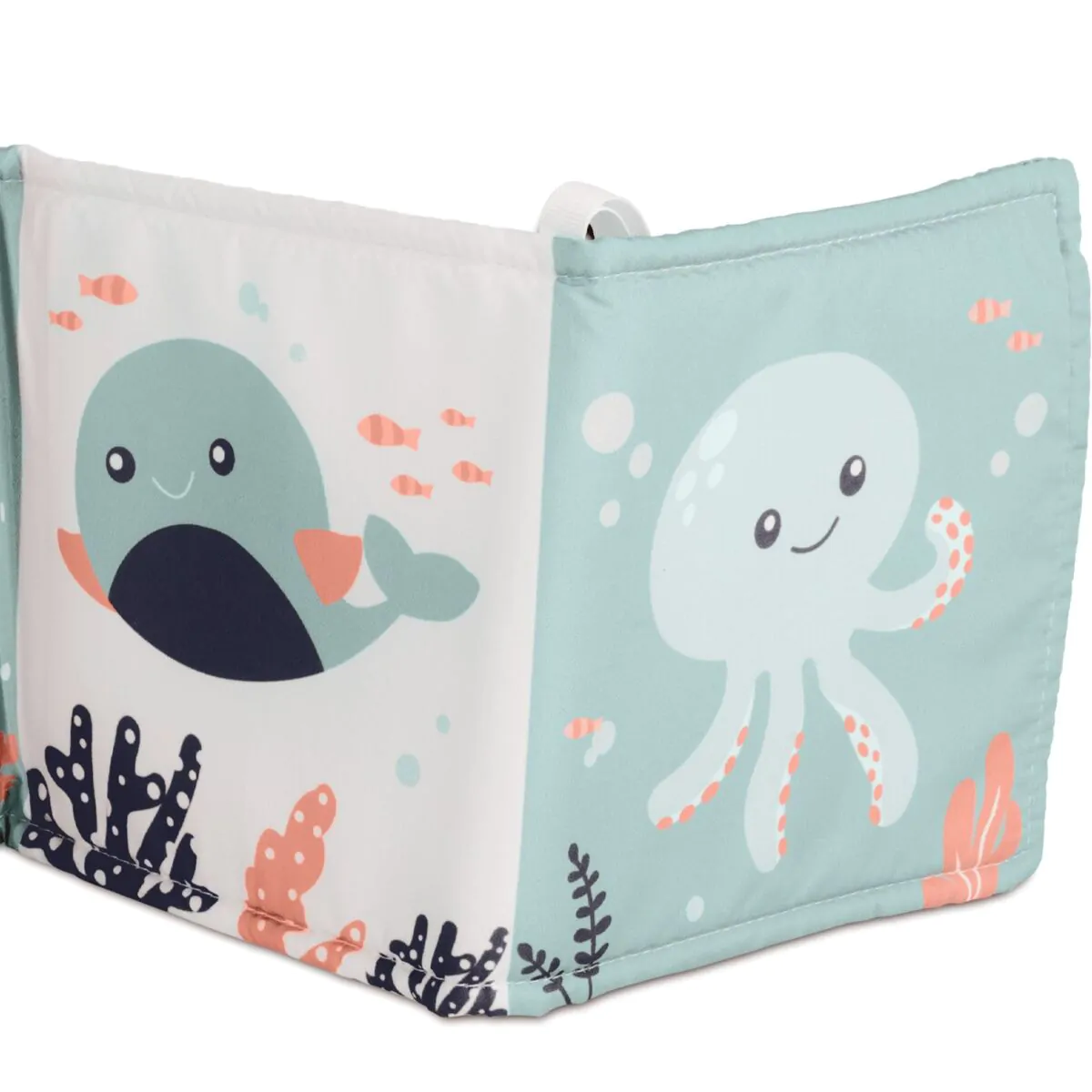 ✔️ Motivos marinos reconocibles: las ilustraciones con figuras inspiradas en el mar ayudan al bebé a reconocer formas y contrastes, estimulando su curiosidad y percepción.