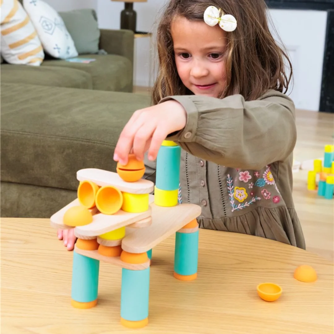 Ideal a partir de los 2 años, Stix acompaña a niños y niñas en su desarrollo motriz y cognitivo, respetando su ritmo y estilo de juego.