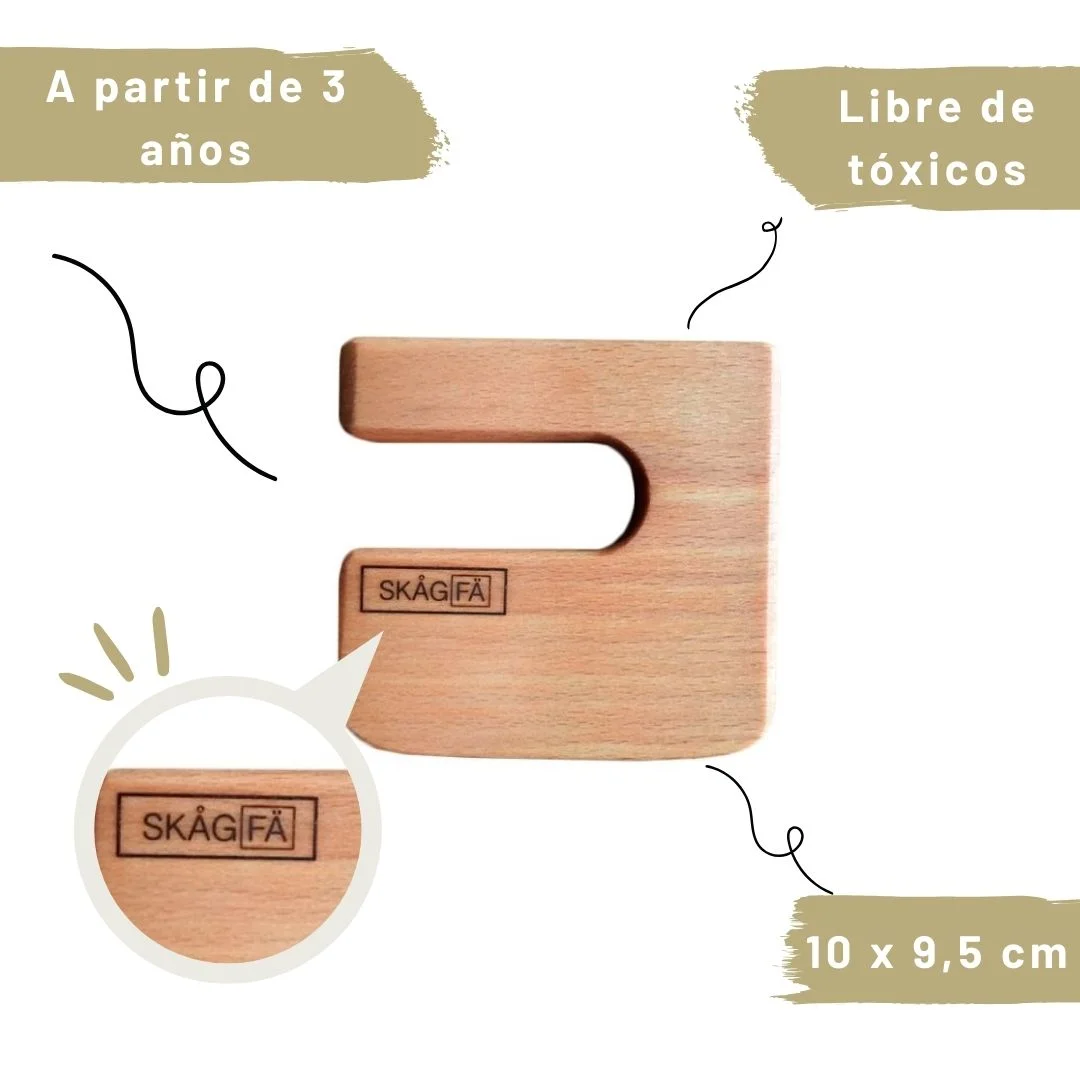 El cuchillo de madera Träkniv es ideal para que los niños participen de manera segura en la cocina. Diseñado para cortar frutas y verduras sin riesgo de herir la piel, permite que los pequeños desarrollen autonomía, independencia y habilidades motoras finas de forma divertida y educativa.