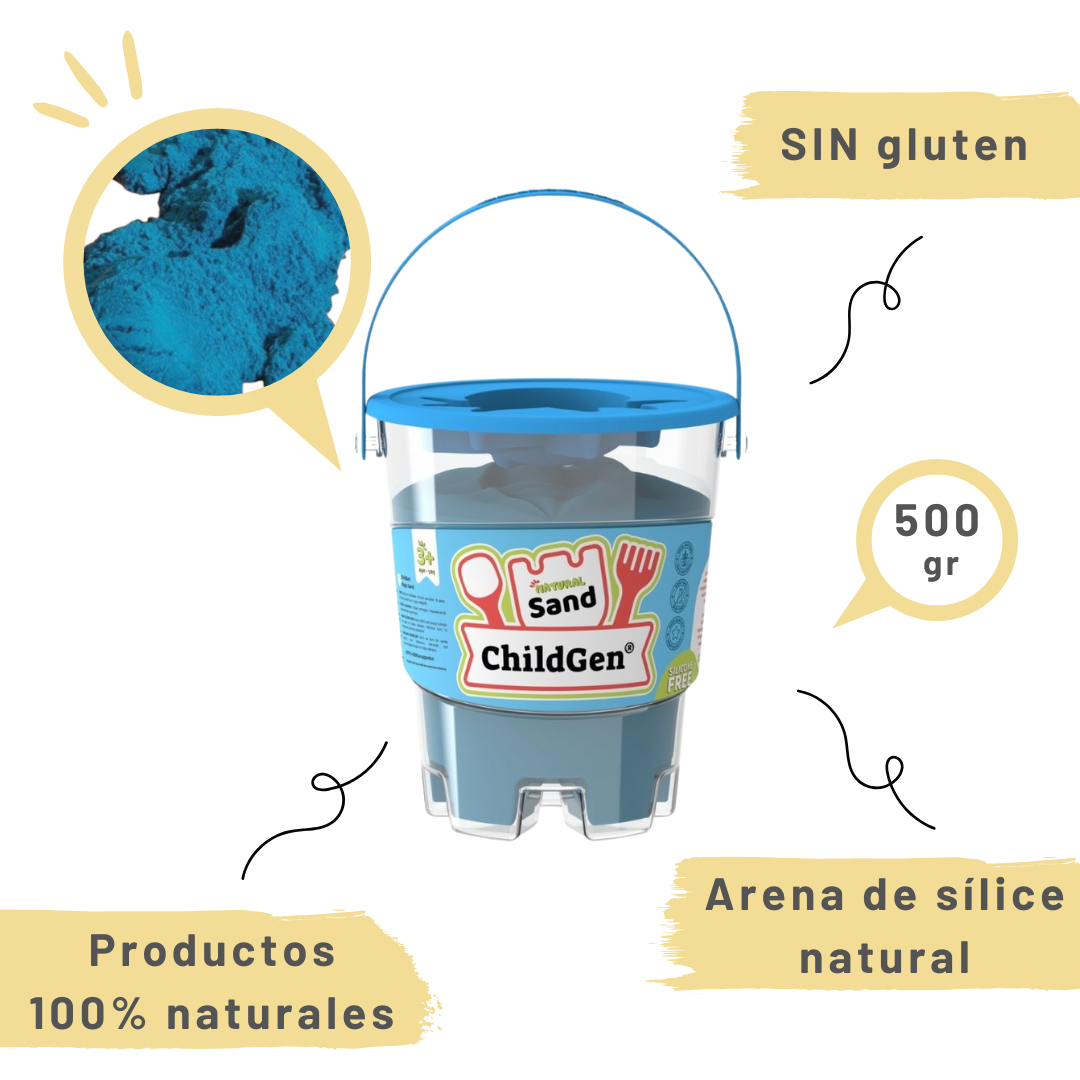Diviértete con la arena cinética 100% Natural Childgen en bote de 500 gr en tres colores diferentes a elegir