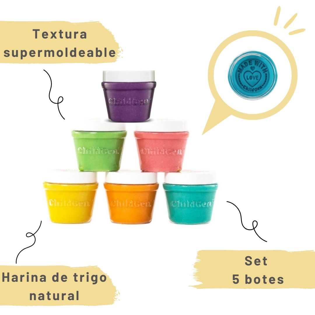 La plastilina 100% natural Childgen está hecha con mucho amor e ingredientes naturales. No contiene tóxicos y ayuda a que los pequeños mejoren su fortaleza y destreza con las manos a la vez que fomenta su imaginación. Es fácil de limpiar y debido a sus materiales de calidad se puede utilizar durante mucho tiempo ya que no se seca ni endurece fácilmente.