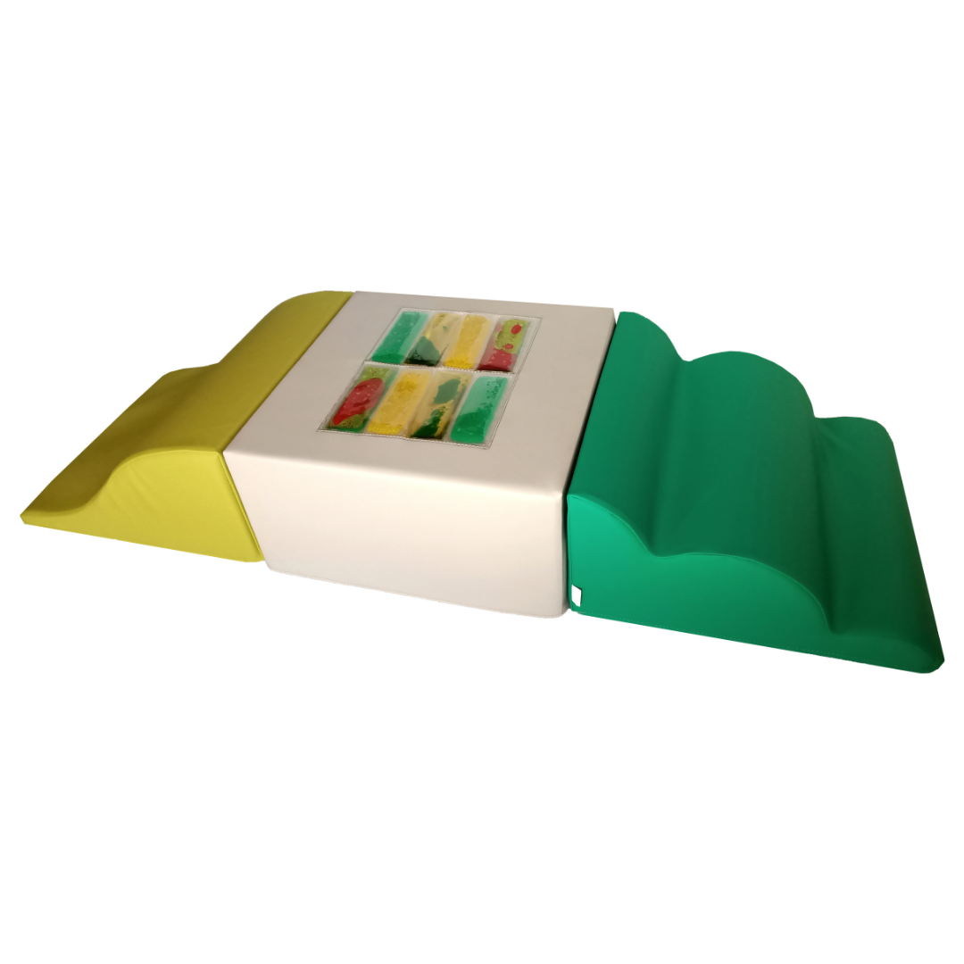 El circuito tactil está diseñado para que los bebés de 6 a 18 meses vivan sus primeras aventuras motrices en un espacio seguro, cómodo y lleno de confianza.