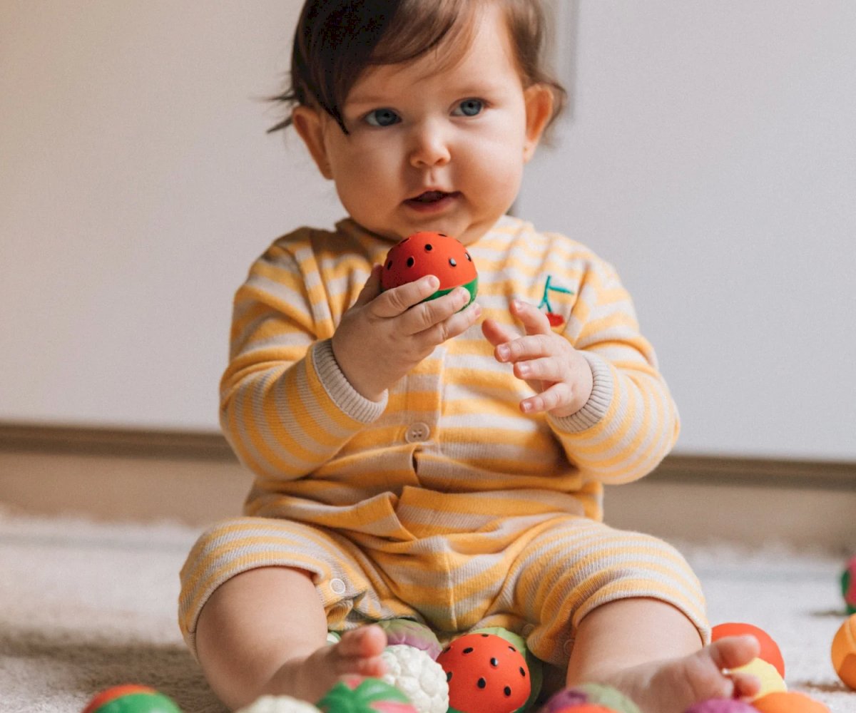 Suaves al tacto, coloridas y ligeras, estas mini frutas invitan a tu bebé a agarrar, apretar, morder y descubrir nuevas texturas, fomentando el desarrollo de la coordinación y la percepción sensorial.