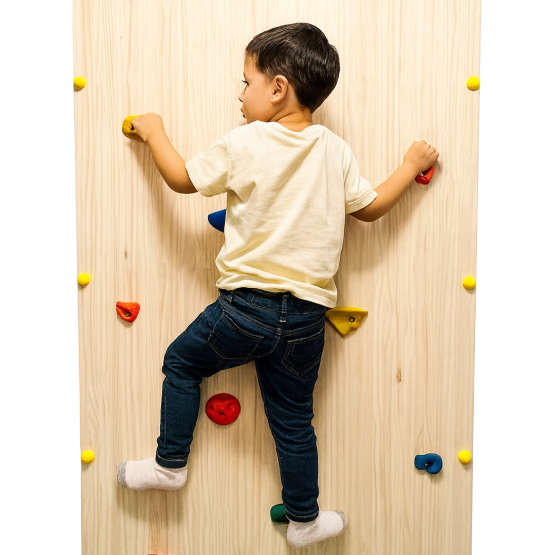 ? Trepar por las piezas de termoplástico, crear rutas de escalada e intercambiar las presas para variar el reto, son algunos de los divertidos juegos que puede hacer y desarrollar así sus habilidades de integración bilateral, coordinación viso-motriz y planificación.